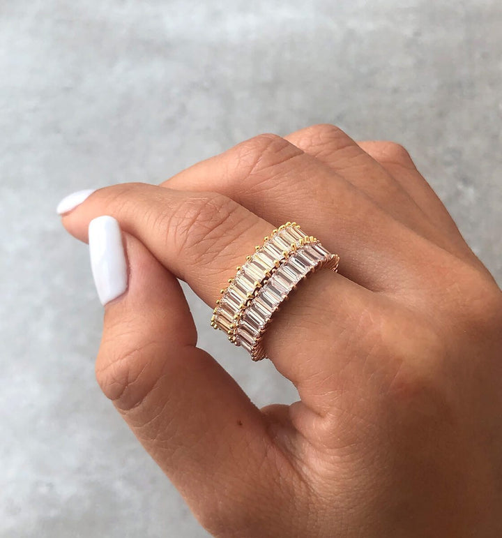 This selection of white stone baguette rings can be mixed matched and stacked to fit any outfit and add a touch of sparkle and colour, whatever the occasion.
