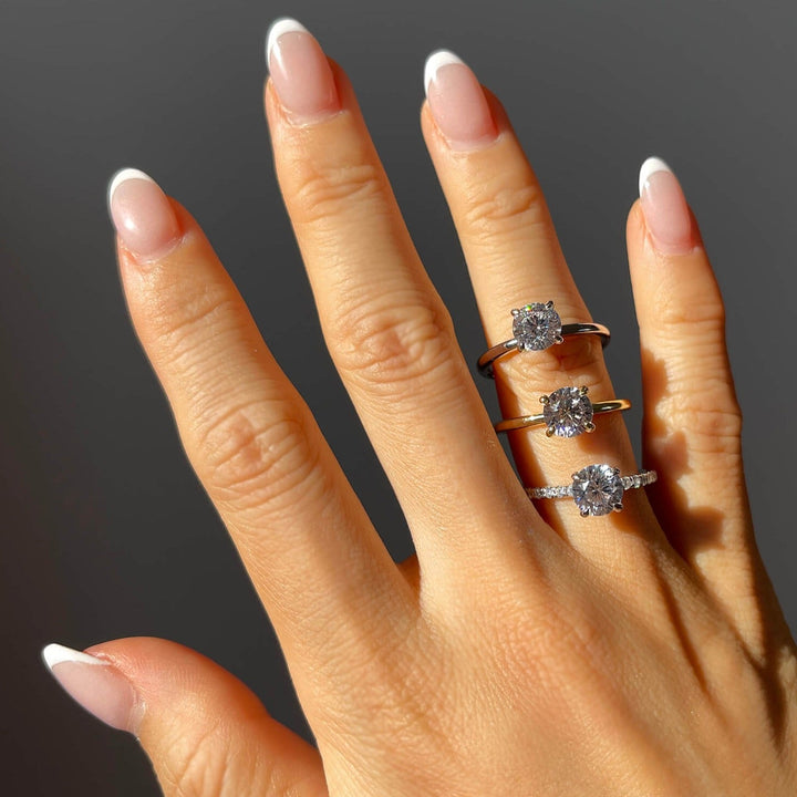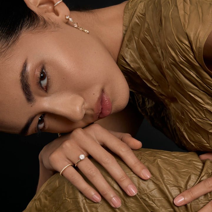 Indulge in the sheer elegance of the Alis ring, where sophistication meets simplicity. Fashioning a Brilliant round cut stone with a discreet under halo, this piece is a statement of grace. This timeless piece is available in 2 styles to suit your individual taste. Fancy a little more sparkle? Check out our Pave Alis ring.