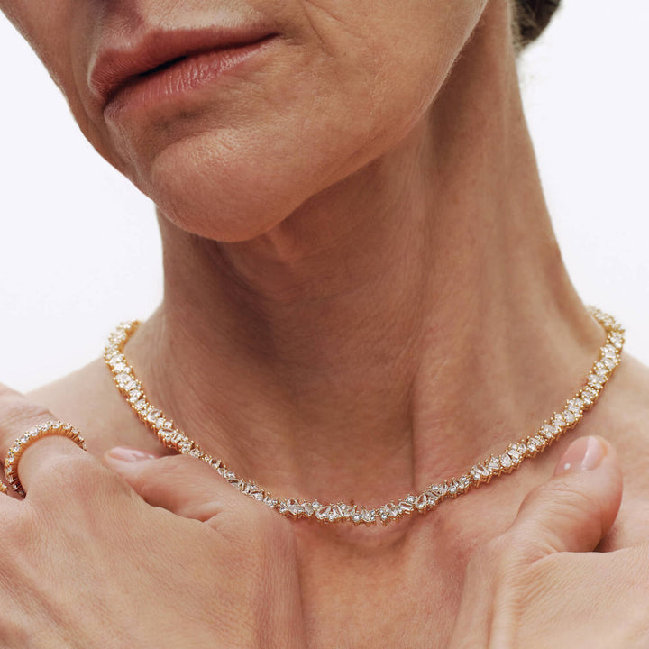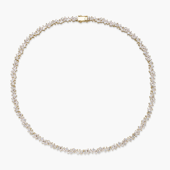Step into a world where elegance meets boldness with our Aurea Necklace. This extraordinary piece showcases a captivating fusion of shapes, creating a mesmerising multi-shape tennis necklace that is truly one-of-a-kind. With its unique and edgy design, this necklace effortlessly stands out from the crowd, making a powerful statement wherever you go.