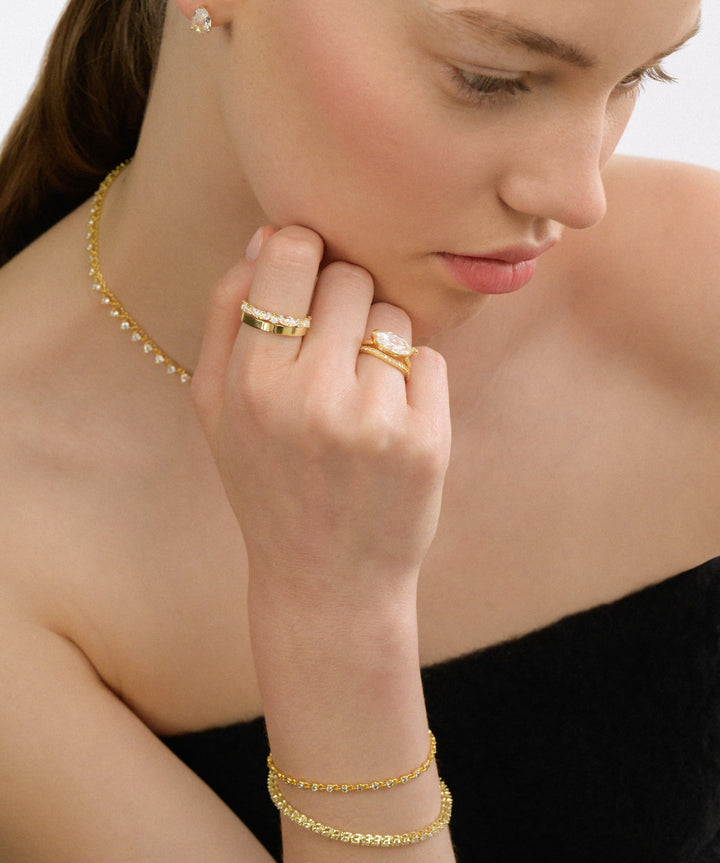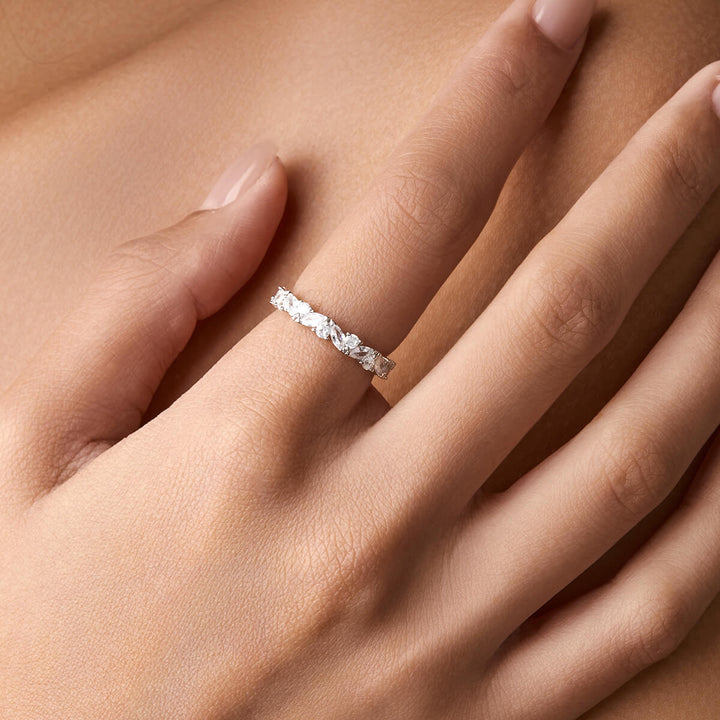 The Bailey Band showcases elegant marquise and brilliant round stones in an eternity band design. This timeless piece offers a sophisticated and classic look and is a must-have for those seeking some luxury. Made with expert craftsmanship and high-quality materials, the Bailey Band is both stunning and enduring.