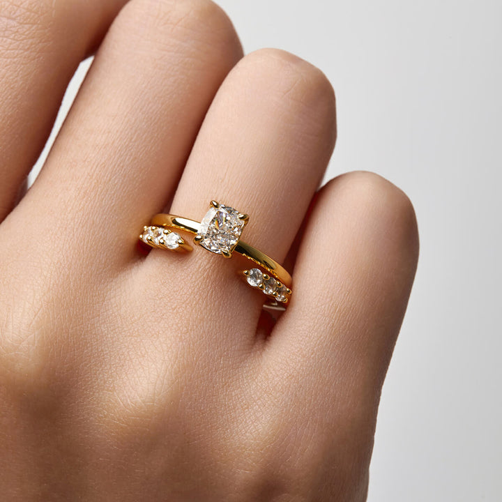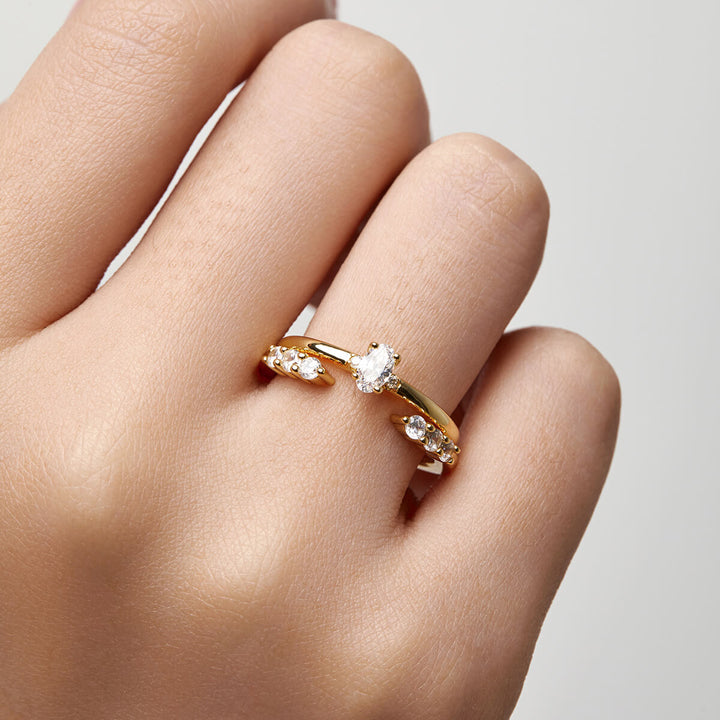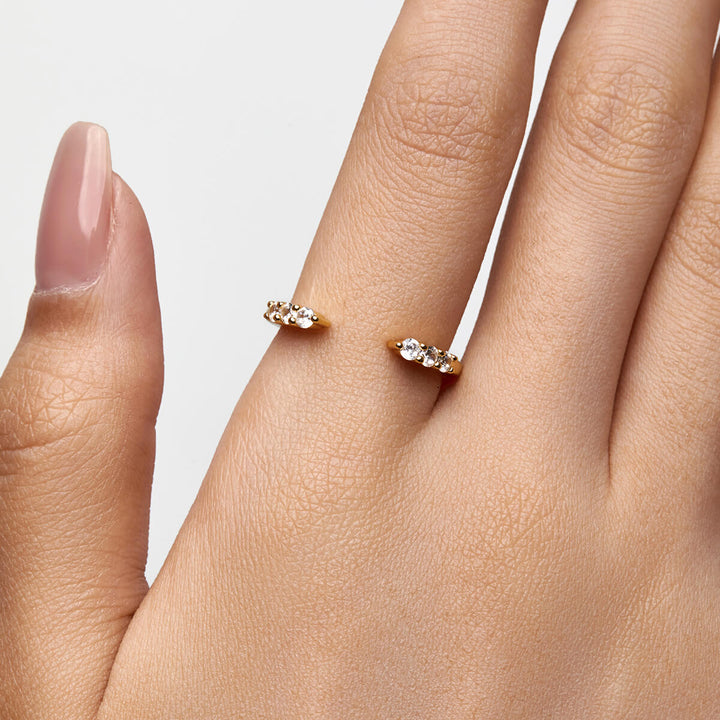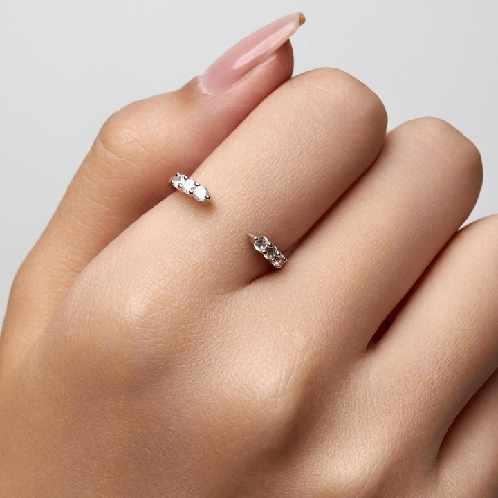 The Belle Ring is a versatile open ring that features a trio of round stones. Its unique design allows for easy stacking with other rings, making it the perfect addition to any jewellery collection. With its eye-catching style and practical functionality, this ring is a must-have for any fashion-forward individual.