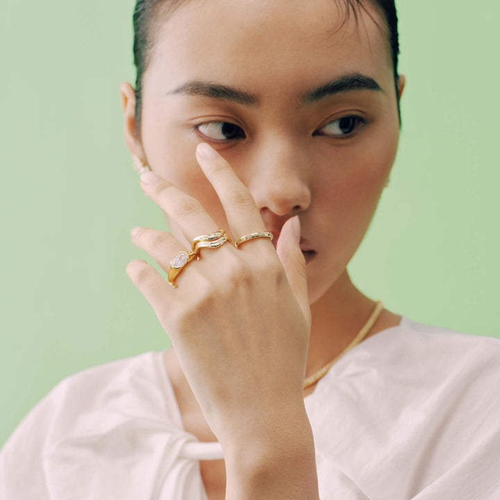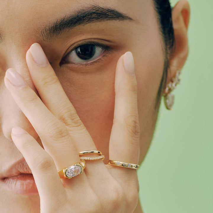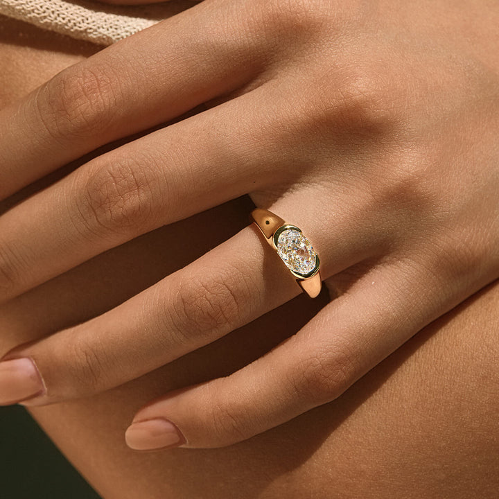 A vintage-inspired classic, the Cala Ring features an elegant oval-cut stone set sideways in a timeless signet-style band. Bold yet refined, it brings a sculptural touch to your collection.