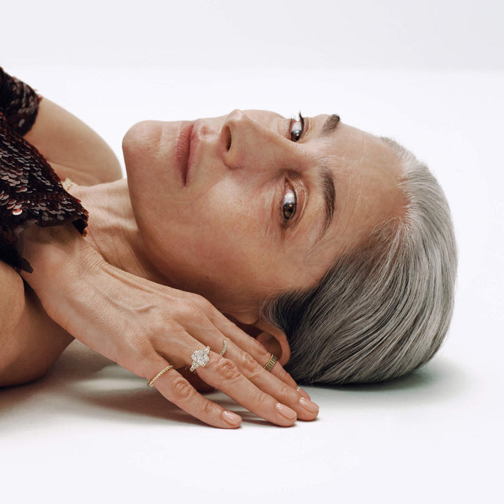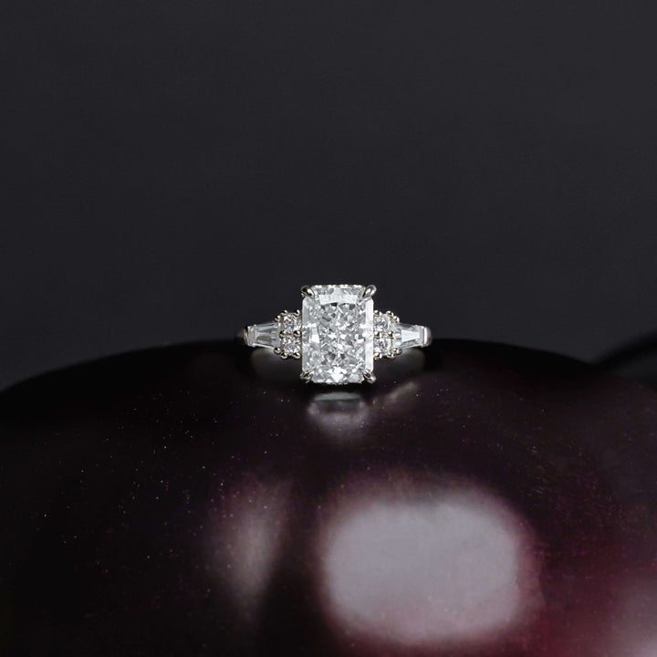 The Cerith Ring is a dazzling embodiment of elegance and sophistication. At its heart lies a captivating radiant centre stone, surrounded by an array of stones that highlight the unique beauty of the design. Perfect for those who appreciate a blend of classic charm and contemporary style, the Cerith Ring is a stunning choice for any special occasion.