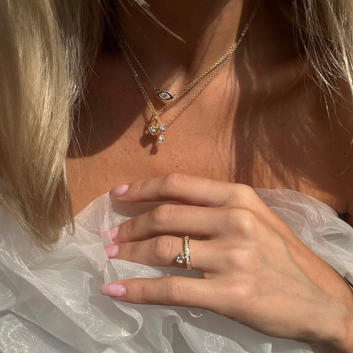 Discover the allure of minimalistic grace and let this enchanting piece adorn your hand with effortless charm and sophistication. Featuring a bezel round stone door knocker design, this ring will draw attention from everyone around you. Wear it and feel like a risk-taker, ready to take on the world!