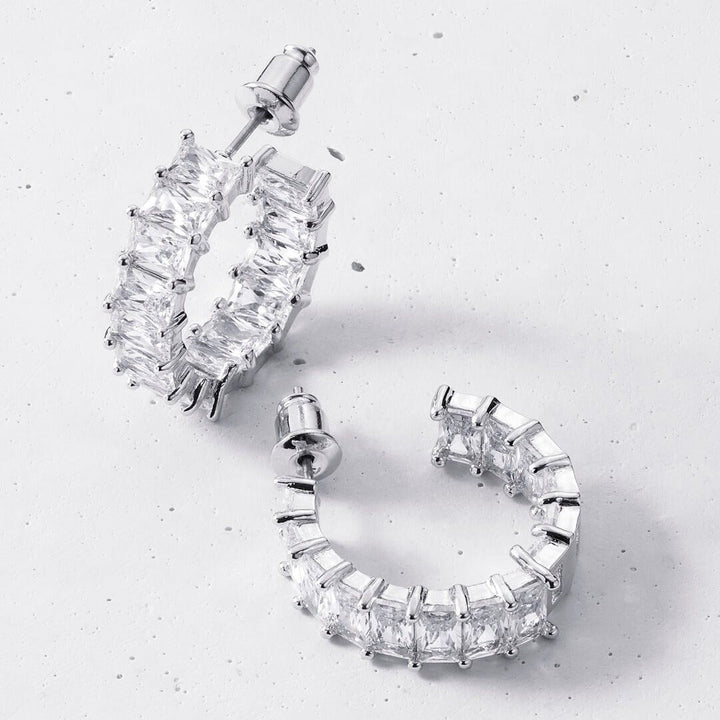 - Note: Crystals are paved where visible, i.e. there are no crystals at the lower back of the earrings or inner top
