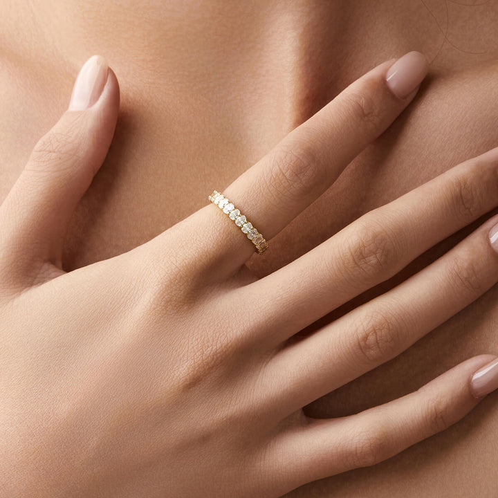 Our stunning Colette Band is an elegant oval stone eternity band design, perfect for adding a touch of elegance to your day. Crafted with quality and style in mind, this band is the perfect accessory for any fashion-forward individual looking to elevate their look.