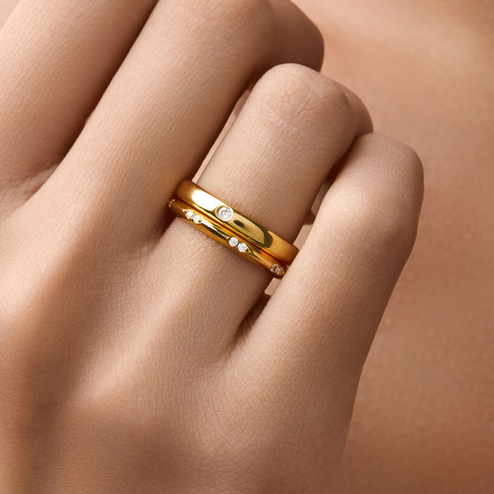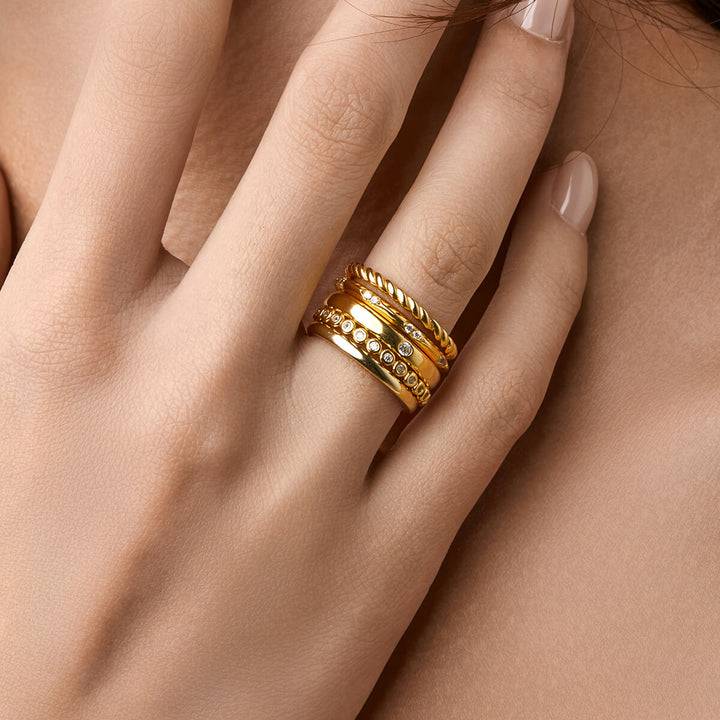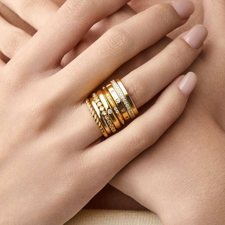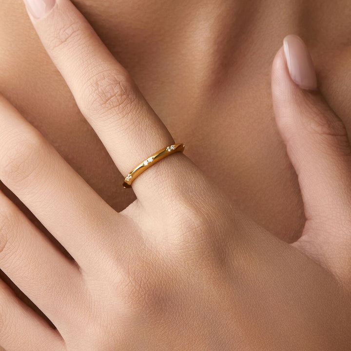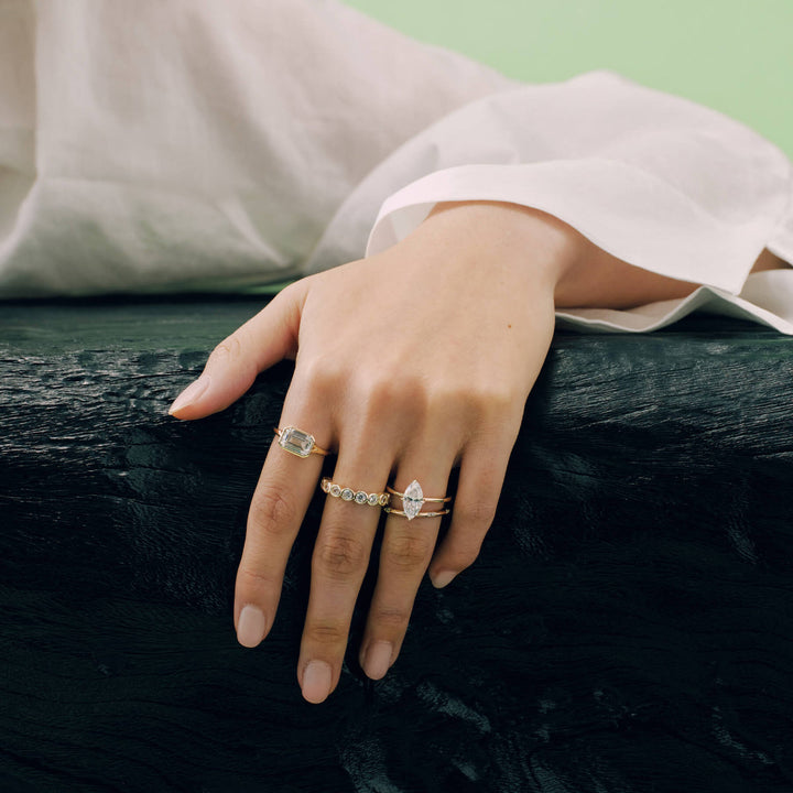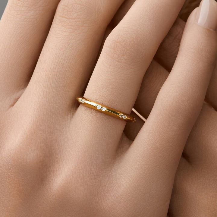 Show off your chic style with the Coraline band. This unique band features round stone studs that add a touch of flair to any outfit. This one-of-a-kind piece is perfect for stacking with other bands or wearing alone. Dare to be different and always stand out with Coraline!