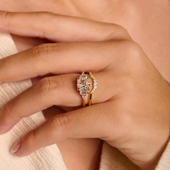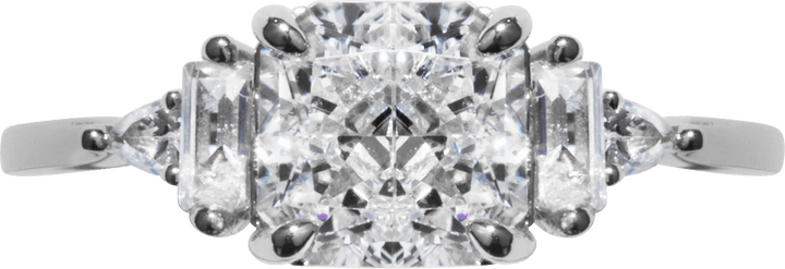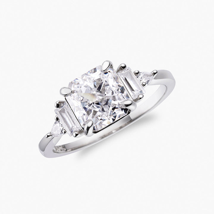 Introducing our breathtaking Crushed Ice Square Ring, a true masterpiece that takes center stage with its captivating beauty. This remarkable ring boasts a mesmerising crushed ice centre stone, elegantly surrounded by glistening baguette and pear-shaped side stones, creating a harmonious blend of modern sophistication and timeless allure.