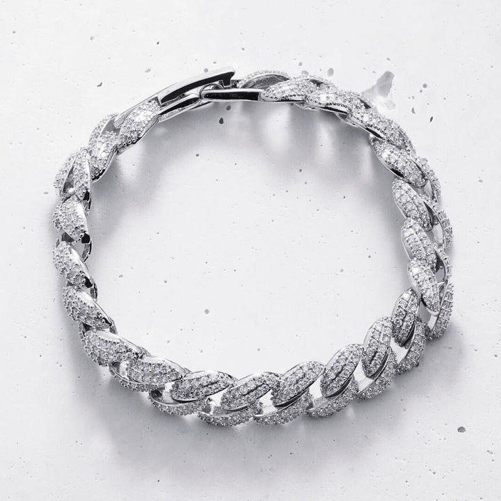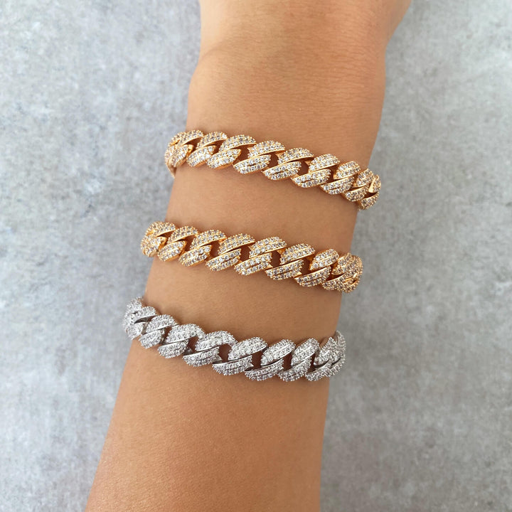 Our dazzling Cuban chain link bracelet radiates style with its intricate micro pavé setting. The classic curb chain links, pavéd perfectly by hand create an impressive ensemble. They can make any outfit instantly chic!