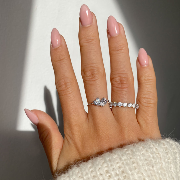 Fall head over heels for this stunning Dainty Pear X Heart Chain Ring! Showcasing two stones, it's the perfect accessory to add a little charm and sparkle to any look. Whether it's for a special occasion or for every day, it's one you'll treasure forever.