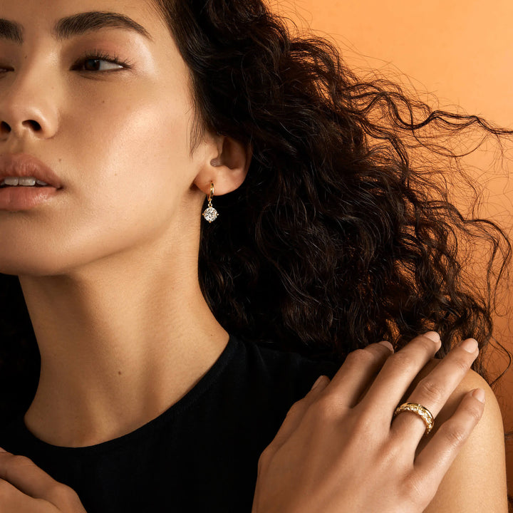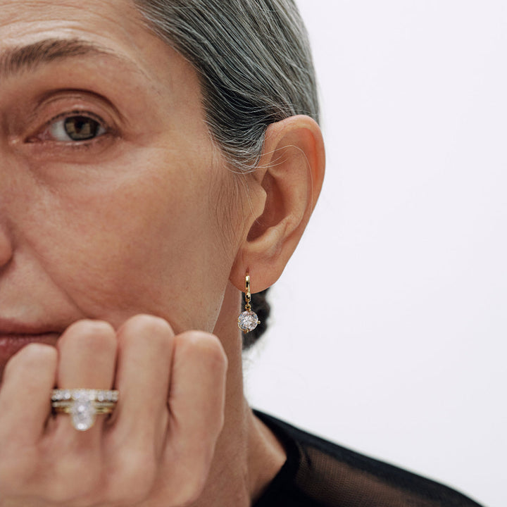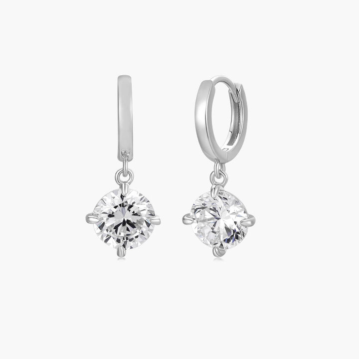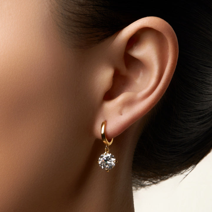 These Dionne earrings feature a unique huggie design with a drop brilliant round stone. The perfect combination of style and elegance, these earrings are versatile enough to be worn for any occasion. With a secure and comfortable fit, they make a stunning addition to any jewellery collection.