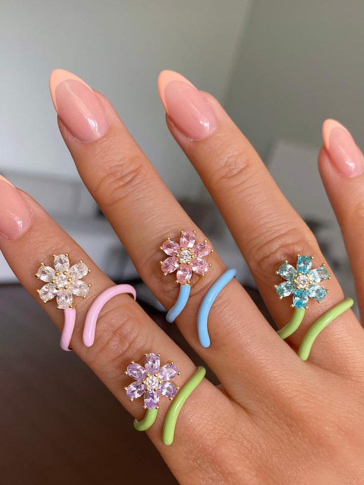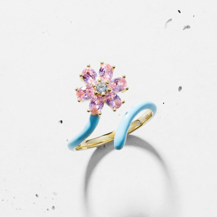 Enamel Flower Open Ring