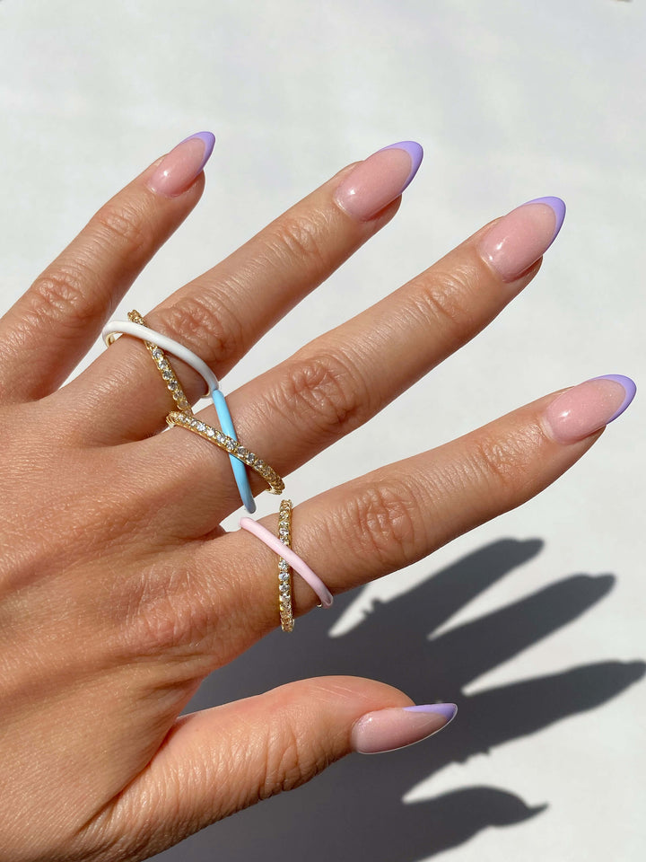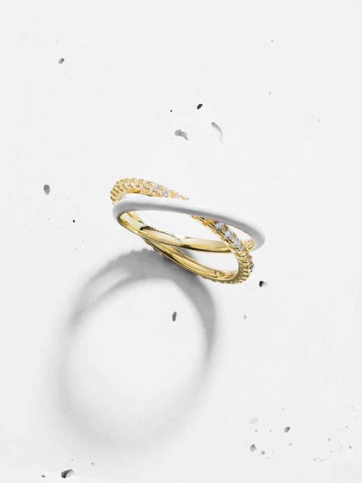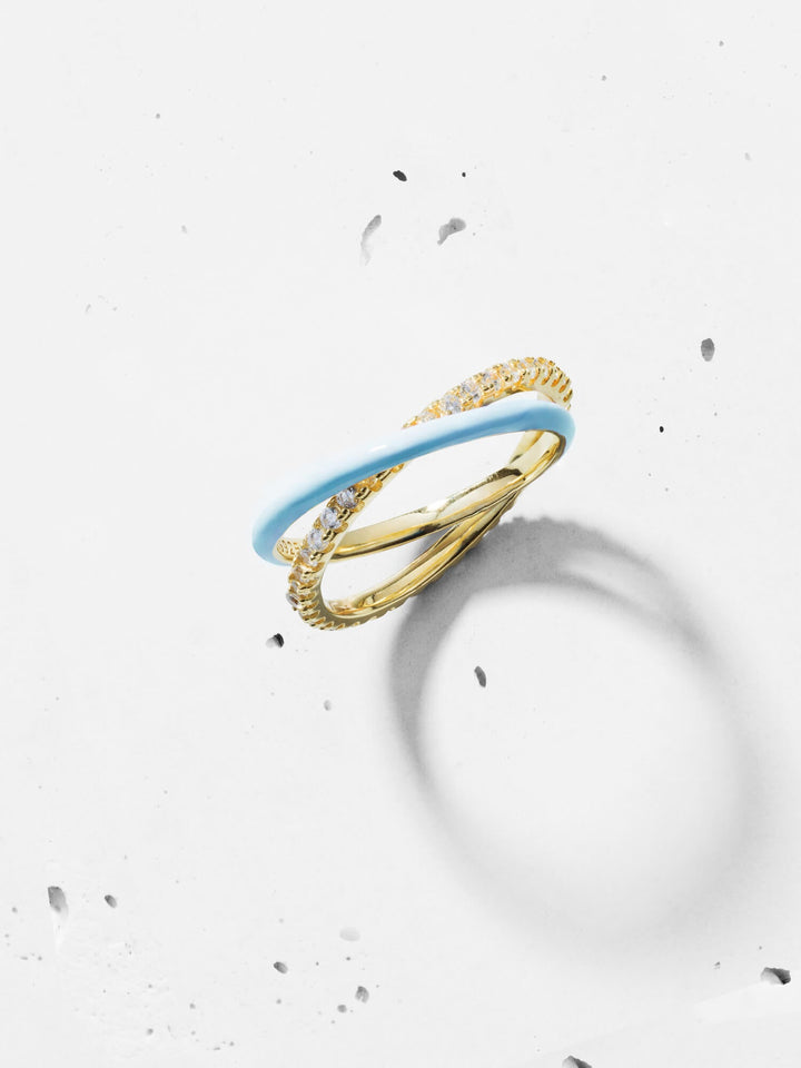 - - Linked rings design- 925 Sterling Silver- 14K Gold plated- Cubic Zirconia- Please note that the enamel is hand-painted. Each piece is unique, color and painting may vary slightly from the photo.