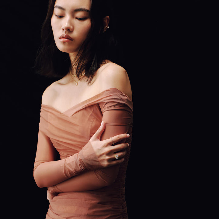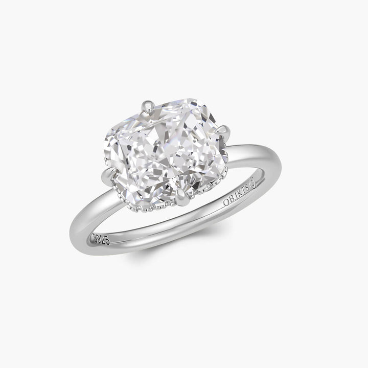 Elegant in its simplicity, the Fiona Ring features a single, cushion-cut stone set delicately to the side on a slender band. A timeless silhouette, understated, refined, and quietly bold.