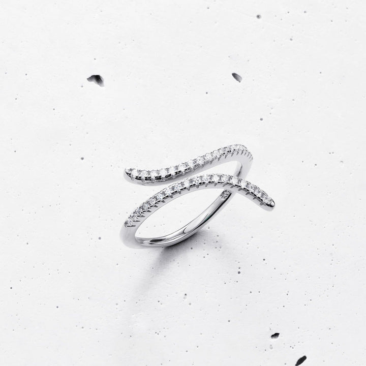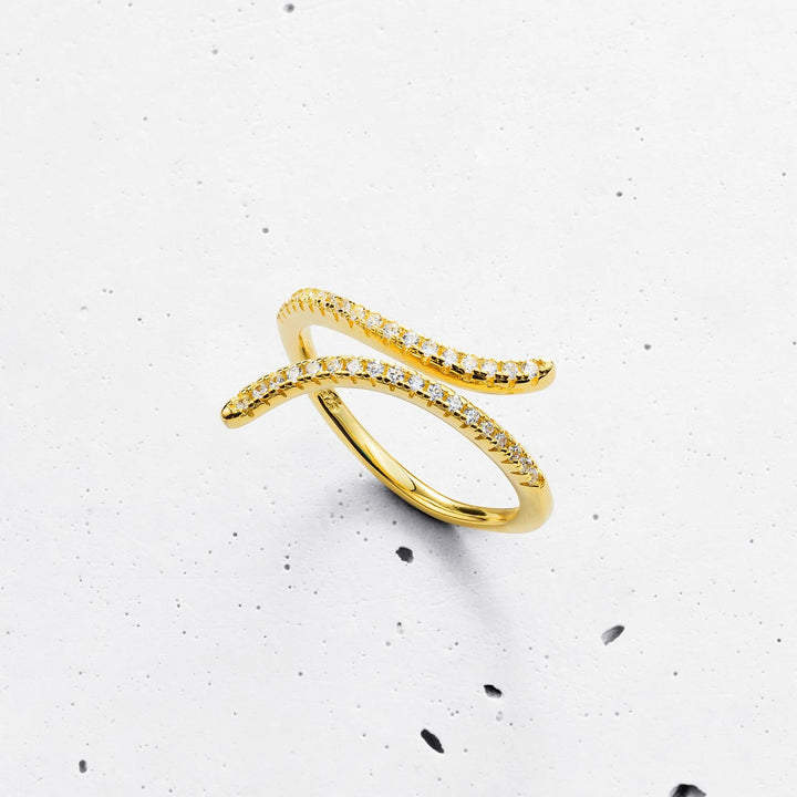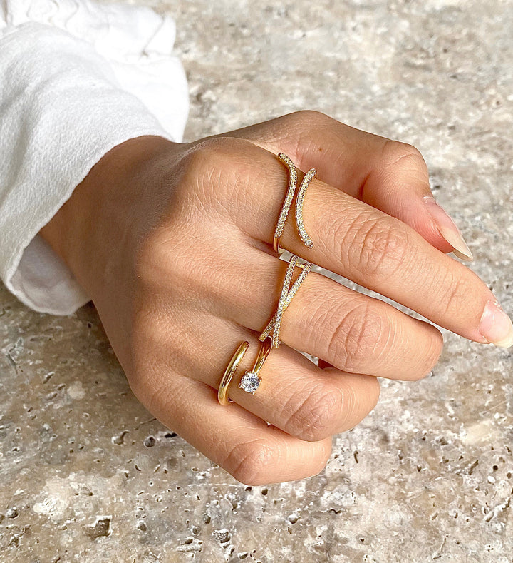 - 925 Sterling silver- Pave cubic zirconia- 18K Gold plated or Rhodium platedJewellery care note: Not adjustable. Please do not bend or adjust the pave part of the ring where there are stones.