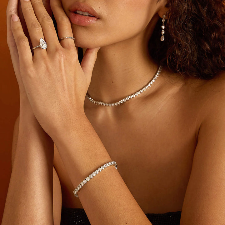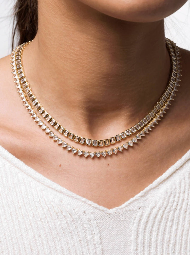 We love our Heart stone Tennis necklace simply because its cute! This pretty chain of high grade glistening hearts is the perfect choice for our romantic babes.