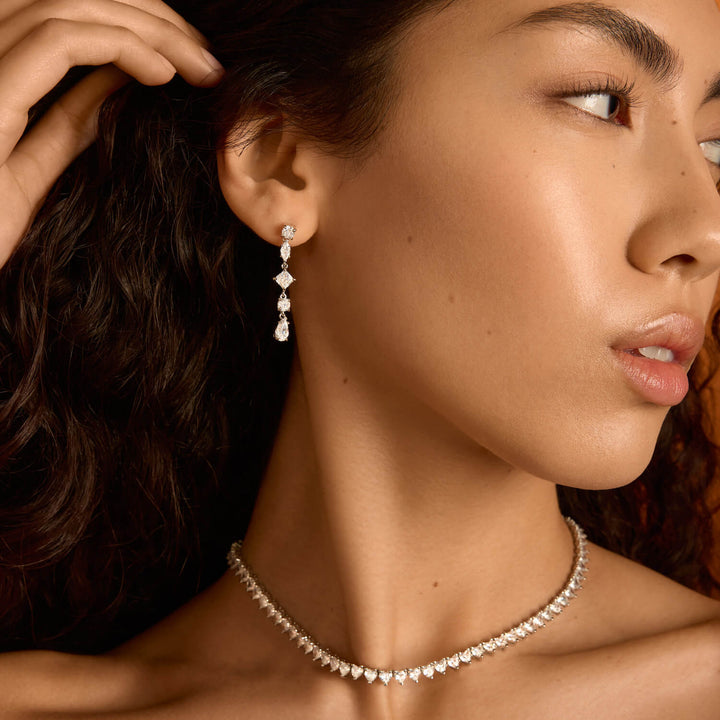 Indulge your sense of style with our exquisite Iris Earrings - the perfect way to elevate any ensemble! Adorned with a variety of sparkling stones, these drop earrings will catch the light and the attention of anyone around you. Elevate your style today with our beautifully crafted Iris Earrings!
