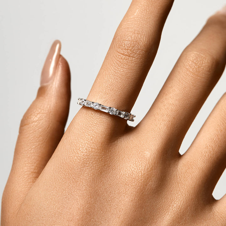 The Iva Ring is an elegant eternity band crafted with a prong setting. Its delicate design is guaranteed to turn heads, with its shimmering stones that bring a touch of sparkle. Whether you're attending a special occasion or looking for an everyday accessory, this timeless piece will compliment your look.
