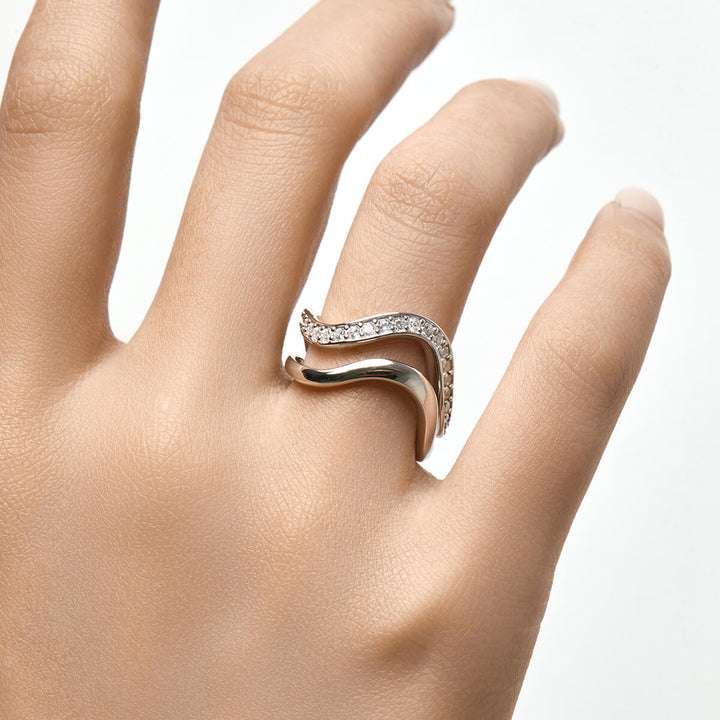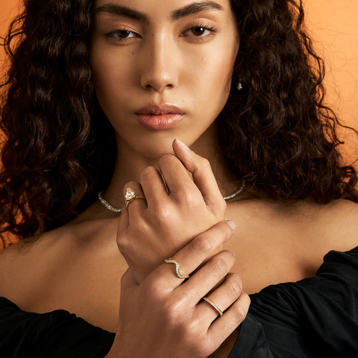 Find your flow with our Jolie Ring - the perfect addition to any accessory collection! With its wave design and delicate pavé detailing, this ring is sure to make a statement. Stack it up for maximum impact or let it shimmer on its own.