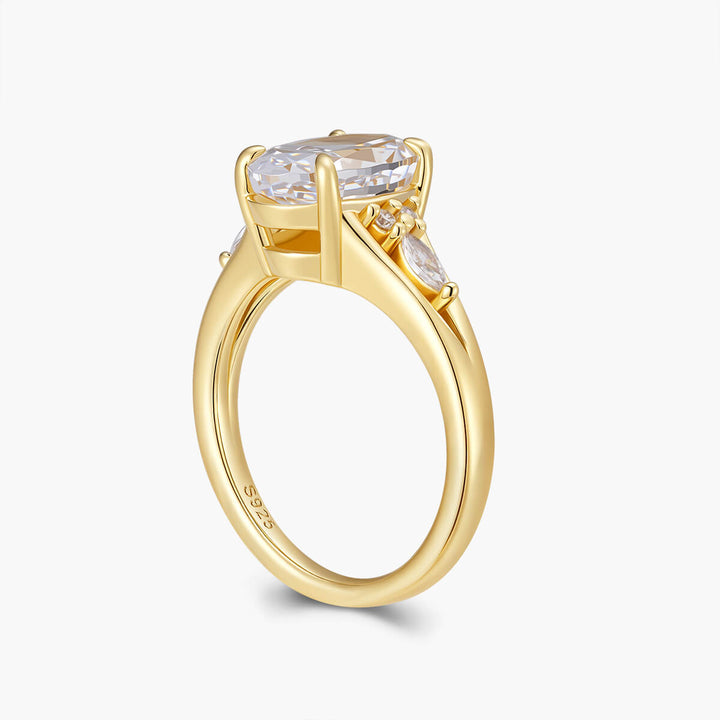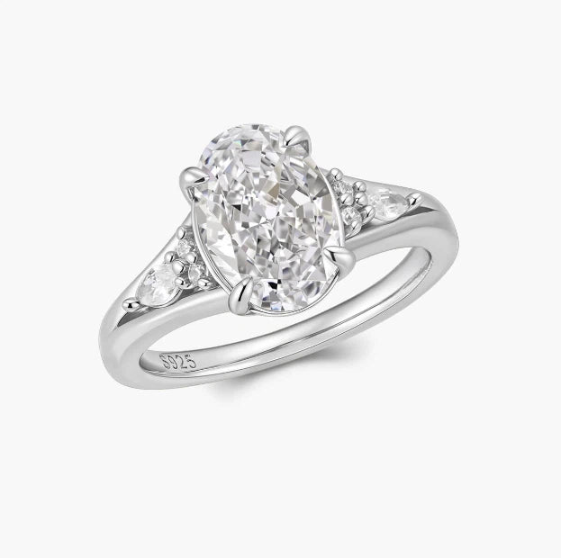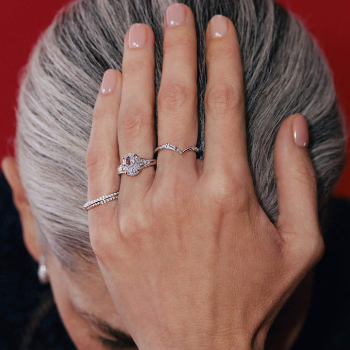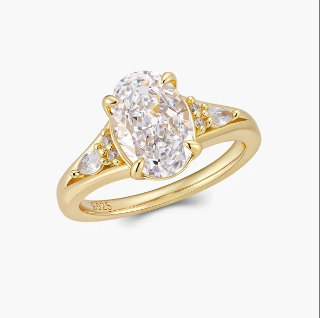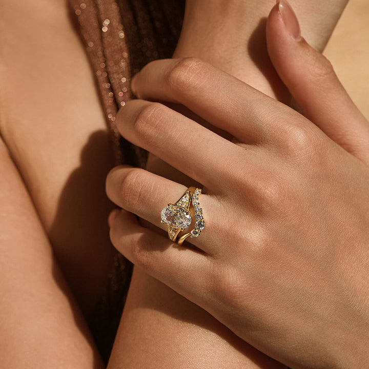 Romantic and radiant, the Leia Ring features a central oval stone framed by a delicate cluster of round and marquise-cut accents. The mix of shapes adds depth and sparkle, creating a softly sculptural silhouette that feels both timeless and unique.