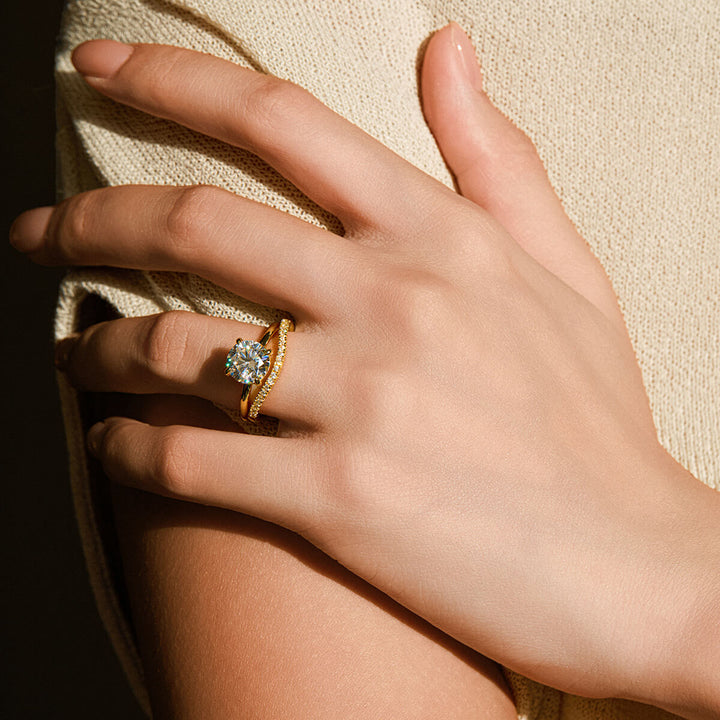 - Stacks perfectly with small and medium-sized solitaire rings (3-7mm width stones).