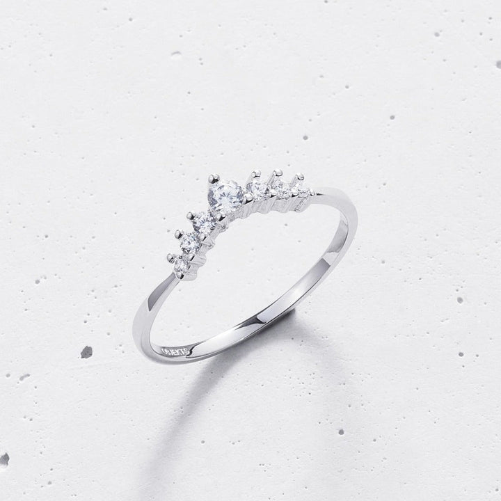 - Stackable C shaped brilliant round ring- 925 Sterling Silver- Rhodium plated or 18K Gold plated- Cubic Zirconia