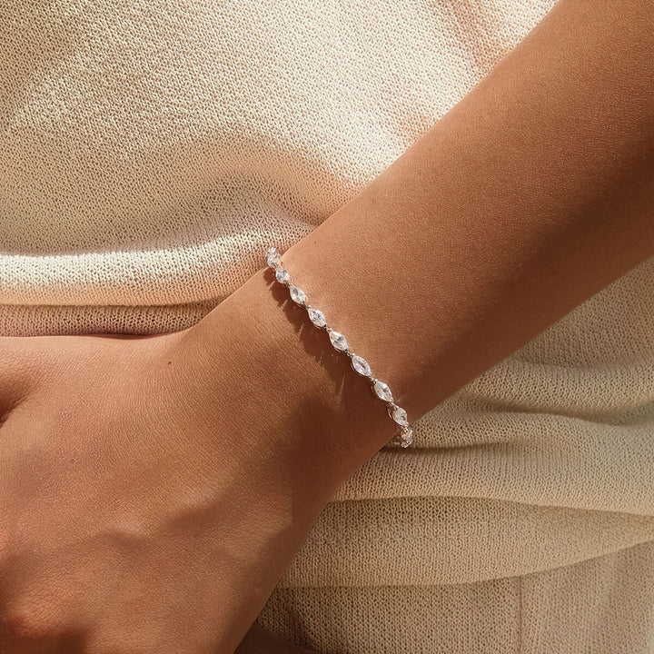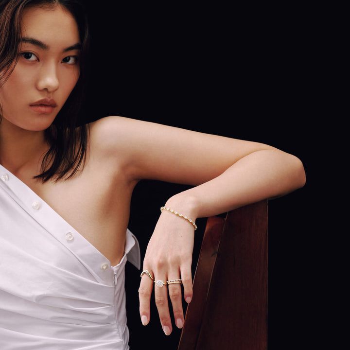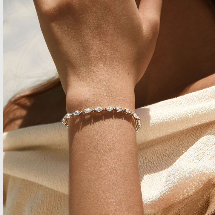 A refined update on a classic. The Marquise Tennis Bracelet features a continuous line of marquise-cut stones, set to highlight their distinctive, elongated shape and subtle brilliance. Understated yet eye-catching, this bracelet is designed to complement any look, whether worn alone or stacked with your other favourites.