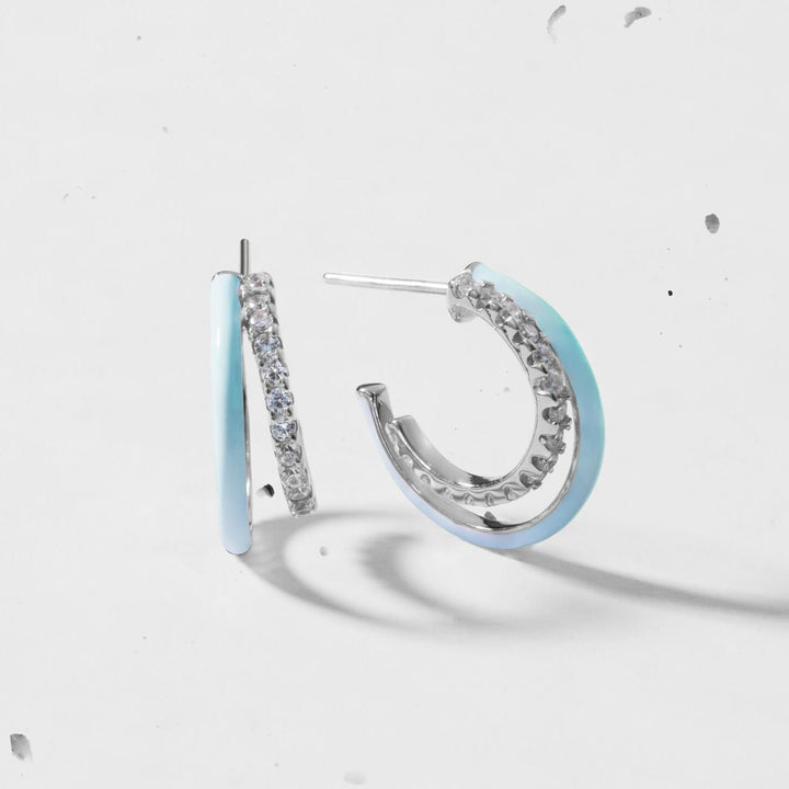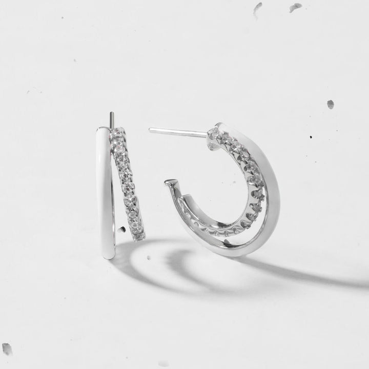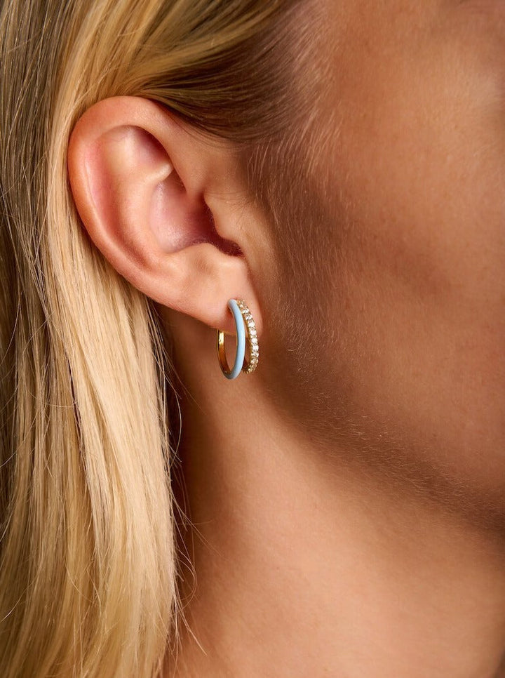 - Note: When placing the earring in your ear piercing, please hold the earring at the very top and hold vertically. Do not hold it horizontally as it might squash and alter the two hoops together and therefore causing the CZ stone to loosen.