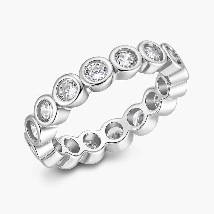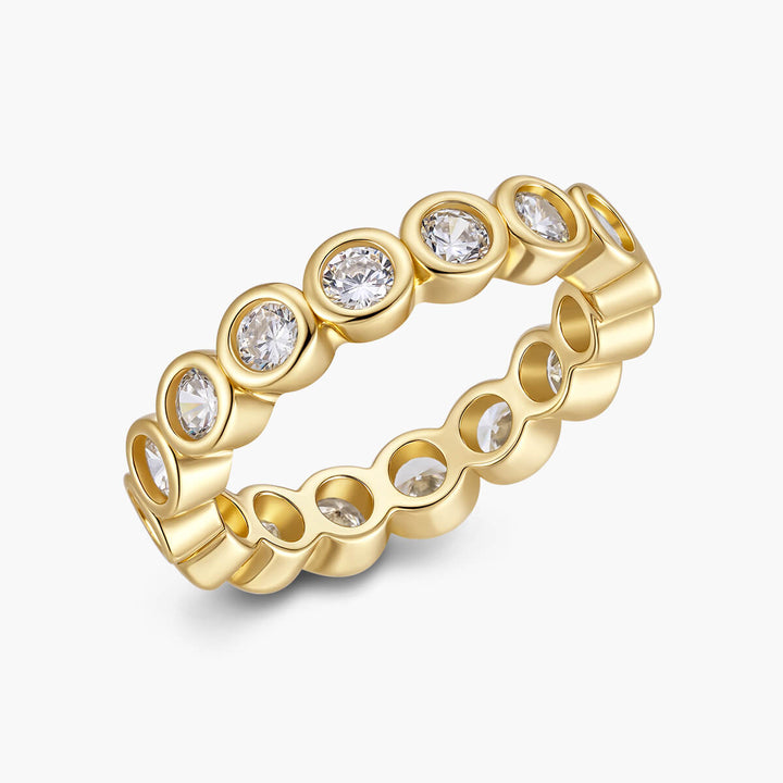 Timeless with a modern twist, the Naia band is an eternity band featuring round stones in sleek bezel settings. The continuous circle of light-catching gems offers a soft, refined shimmer—perfect for everyday wear or stacking with your favourites. Elegant, enduring, and effortlessly polished.