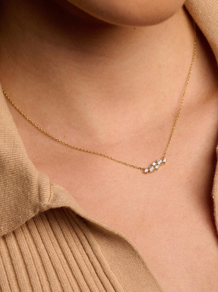 - Dainty brilliant round cluster pendant- 925 Sterling silver- Rhodium or 14K gold plated- Cubic zirconia- Adjustable