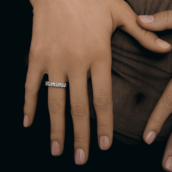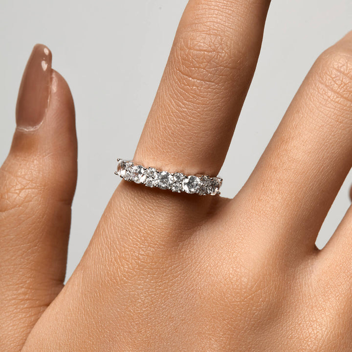 The Nubes Rings is a dazzling showcase of sophistication, crafted from multi brilliant round stones that cascade across the half eternity band. Exquisitely designed, the Nubes Rings radiate a breathtaking, timeless elegance.
