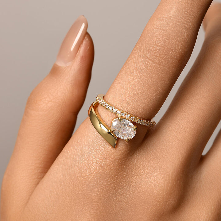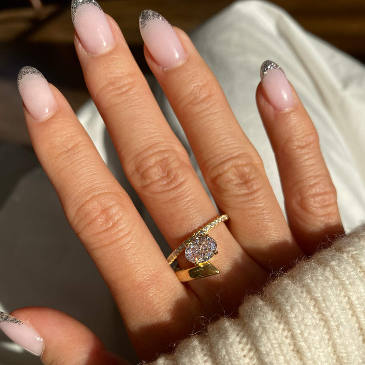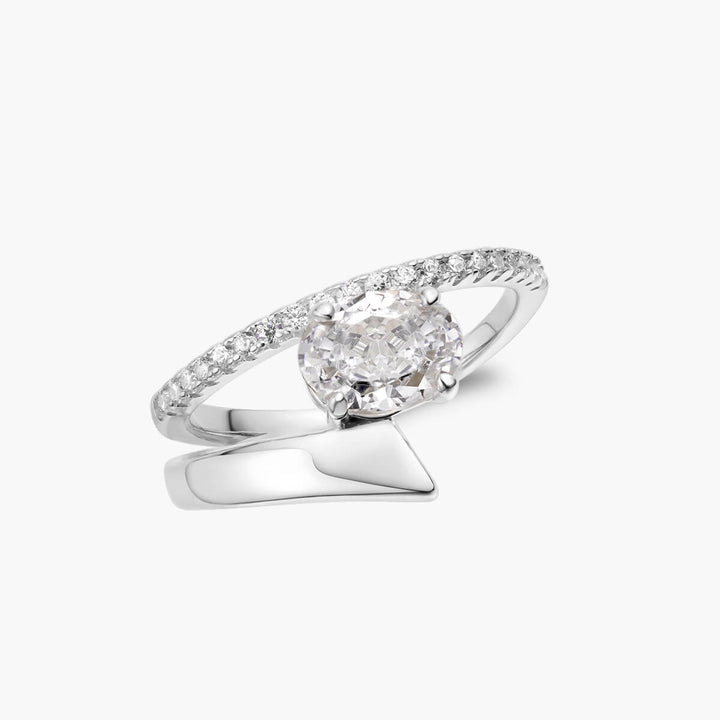 Bring classic elegance to any look with the Ova Ring. This pavé wrap band features a floating crushed ice oval stone for a unique style you can't find anywhere else. Enjoy the timeless style of this stunning ring, perfect for any occasion.