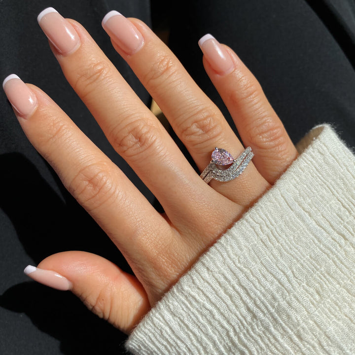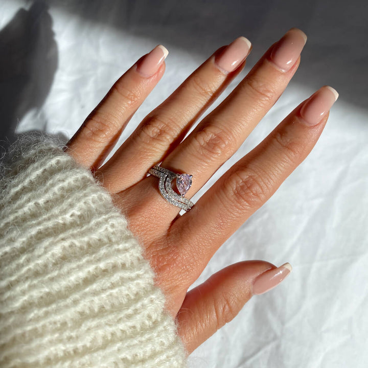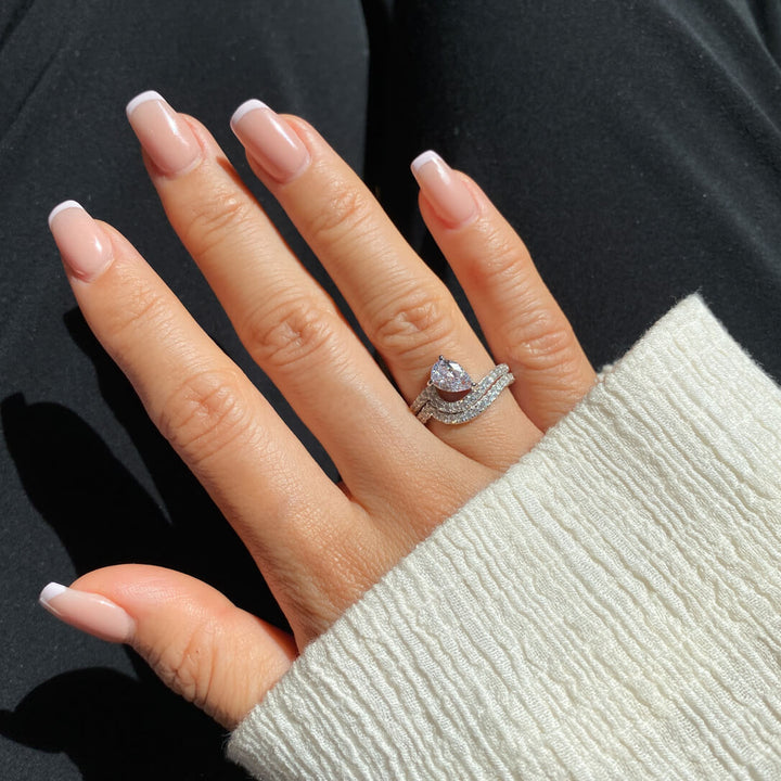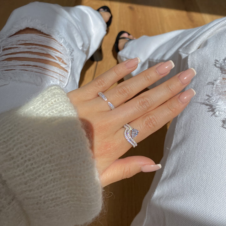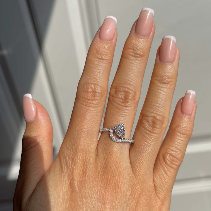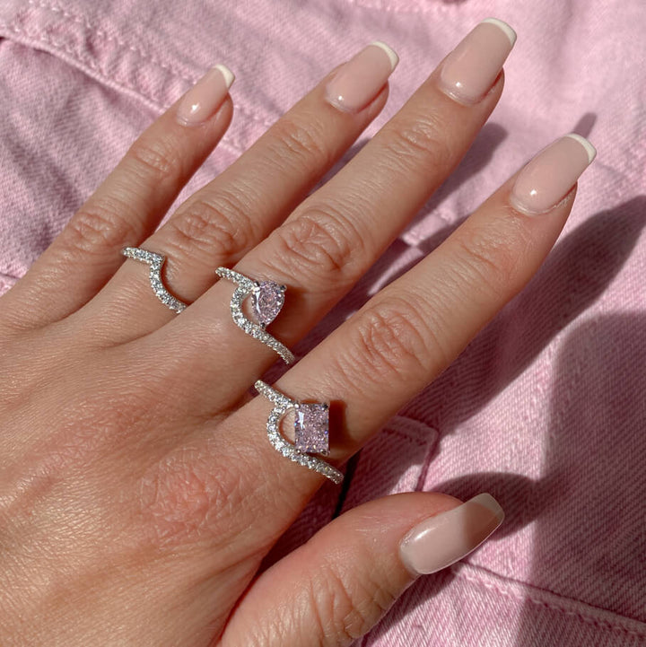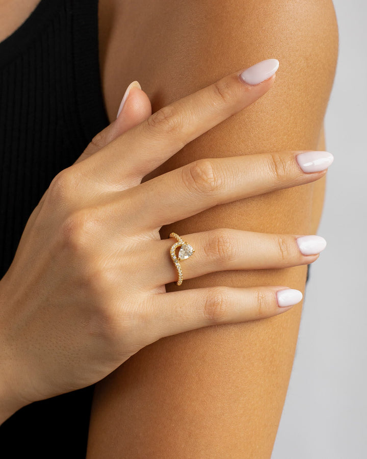 Meet the beautiful Perle ring, available in Plain, Pave or Enamel. This enchanting ring will be your new summer go to. With its unusual and elegant shape, matched with a Crushed ice Pear Cut stone, this ring will let you turn up the heat this season. Pair this with our Pave Flux Ring for extra shimmer.