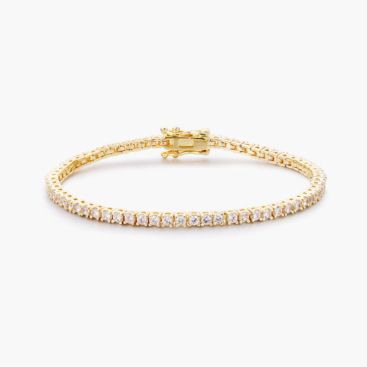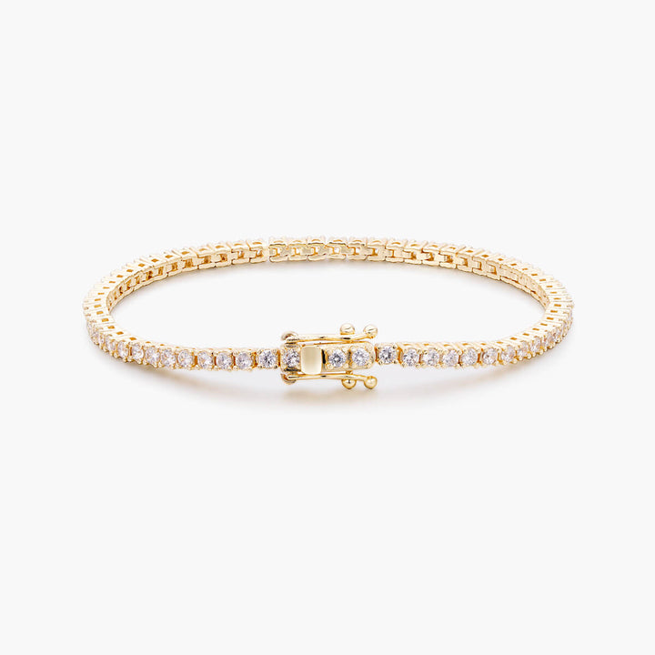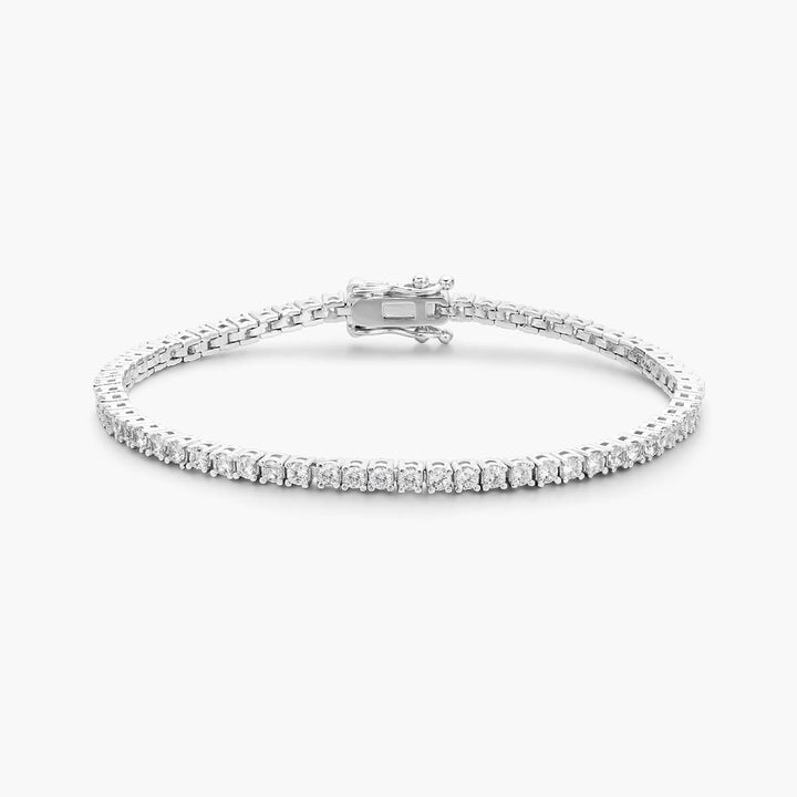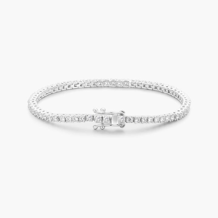 Pictured in the model photo from left to right are the tennis bracelets with stone sizes 2.5mm, 4mm, and 2mm.