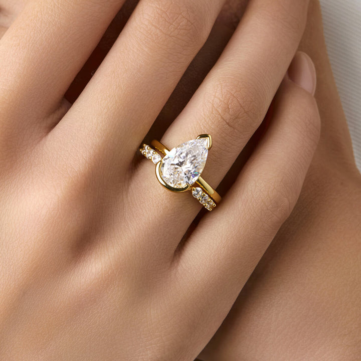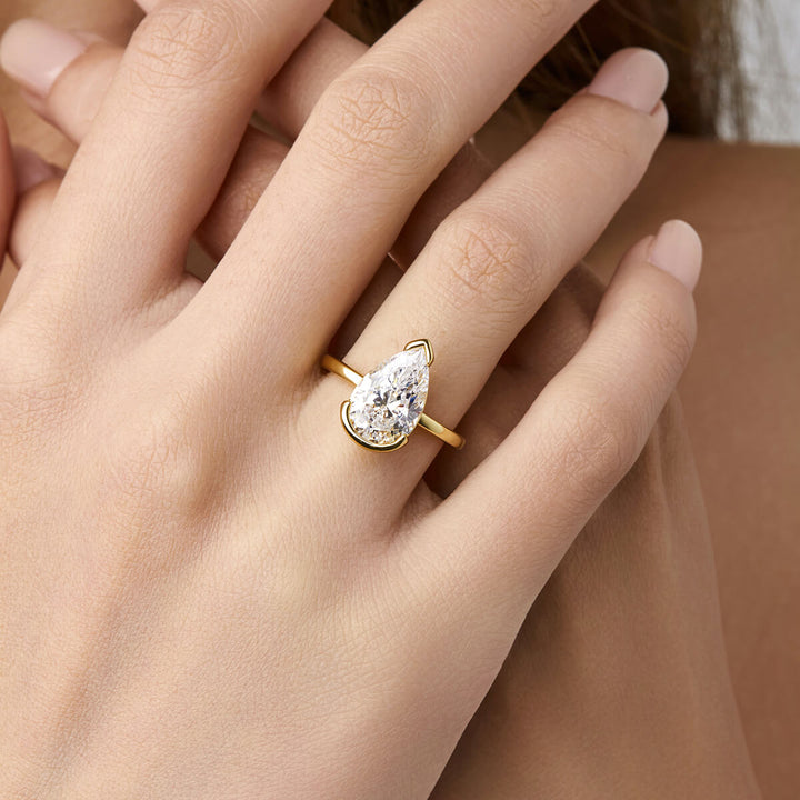 Meet the Phoebe Ring: a stunning crushed ice pear-shaped stone set in a sleek half bezel setting. The unique cut of the stone creates a dazzling, multifaceted sparkle, while the modern setting highlights its beauty. With its elegant design, the Phoebe Ring is a perfect blend of contemporary style and timeless allure.