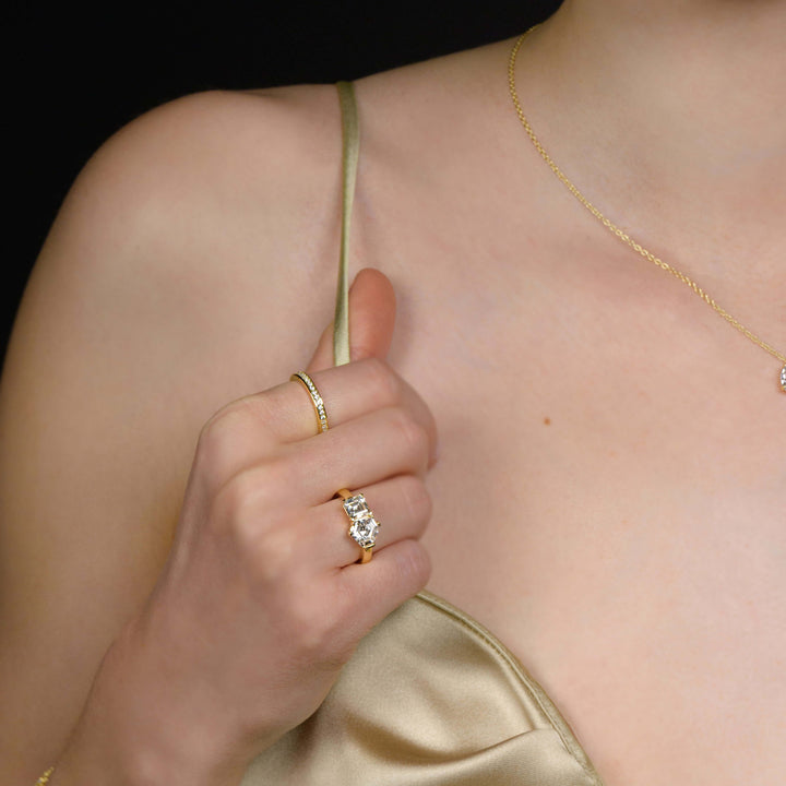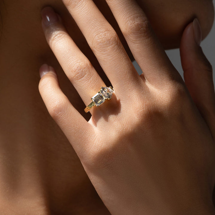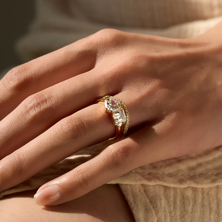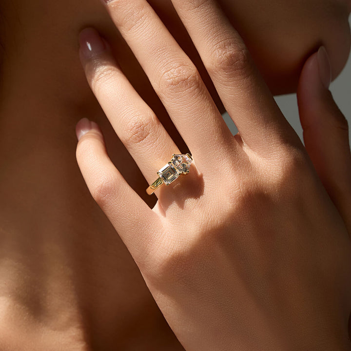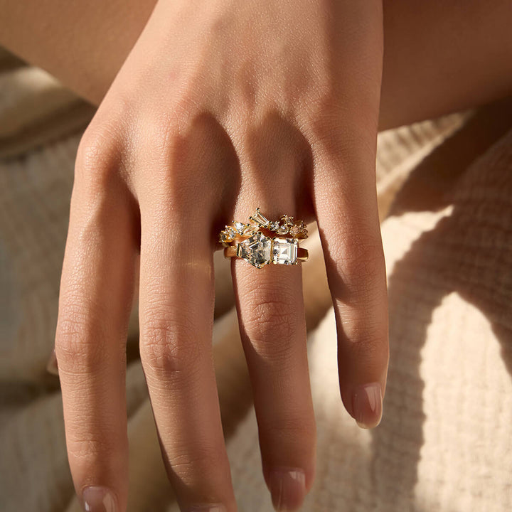 The Reina Ring is a celebration of contrast and symmetry, featuring two distinct stones. Set in a sleek, refined band, the Reina Ring merges classic elegance with bold modernity, making it a statement piece for those who appreciate uniqueness.