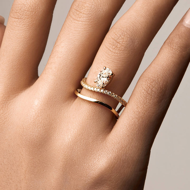 Enhance your style with our Sage Ring. This double layered wave ring features a stunning floating oval stone that will catch everyone's eye. Add a touch of elegance and uniqueness to your outfit. Perfect for any occasion, whether it's a casual day out or a special event.
