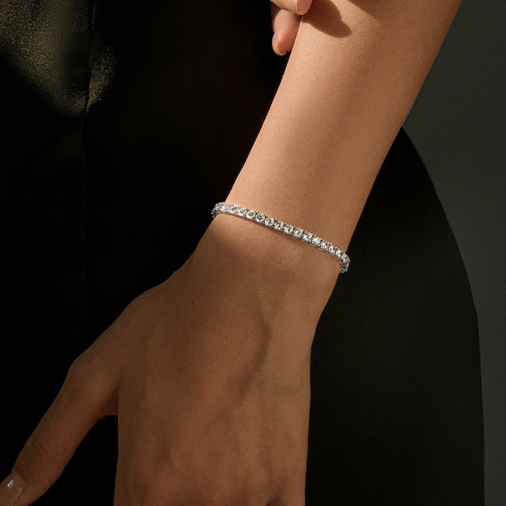 Our bestselling unisex bracelet, upgraded with hard-wearing 925 Sterling Silver. The new clasp design ensures a seamless flow of 5A cubic zirconia with the most intense sparkle, while holding the bracelet securely in place.