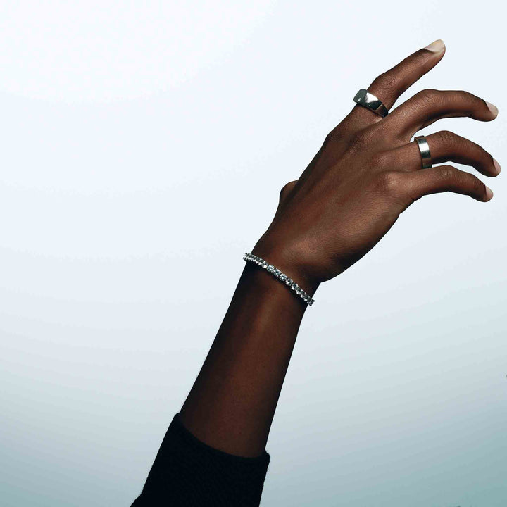 Our bestselling unisex bracelet, upgraded with hard-wearing 925 Sterling Silver. The new clasp design ensures a seamless flow of 5A cubic zirconia with the most intense sparkle, while holding the bracelet securely in place.