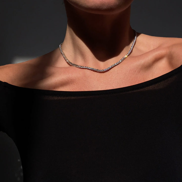 Our classic chain of Cubic Zirconia is this season's hottest trend. Welcoming our sellout Tennis necklace. It’s the perfect way to add a little glamour to your everyday. Available in 2 lengths so you can stack and style in your own way.