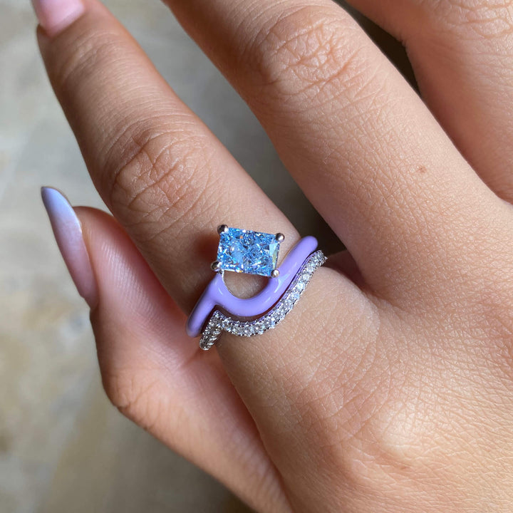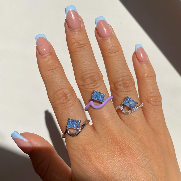Our stunning Vagues ring is a show stopper from this collection. Its irresistible flare for uniqueness and charm is undeniable. Available in Plain, Pave or Enamel so you can find the style that suits you best. With a shimmering Radiant Crushed Ice stone you’ll be sparkling as much as the sea. Ocean waves all day.