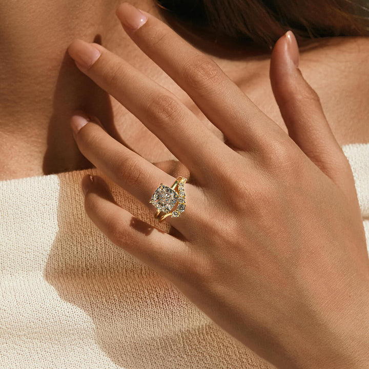 Timeless with a touch of intrigue, the Zia Ring features a cushion-cut solitaire elevated by a hidden halo of stones beneath the setting. Classic from the top, with a sparkling surprise from the side - it’s a refined statement piece with subtle depth and brilliance.