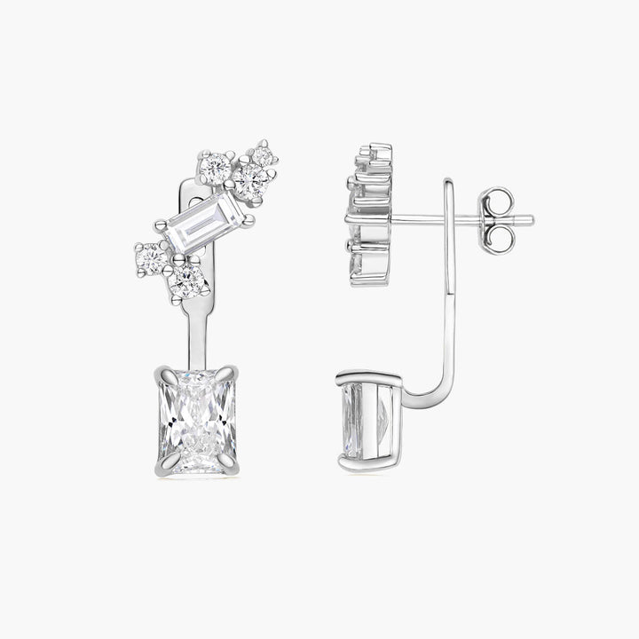 Effortlessly elevate your style with our Zoe Earrings. These interchangeable ear jacket earrings feature a stunning multi stone climber, complete with a floating radiant stone drop. With these earrings, you'll radiate sophistication and luxury.